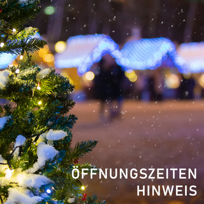 Aktueller Öffnungszeiten-Hinweis und Öffnungszeiten über die Feiertage