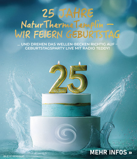 Wir feiern 25 Jahre NaturThermeTemplin! Am 15. November 2025 steigt in der NaturThermeTemplin eine fette Party: die Therme feiert 25. Geburtstag und als Familientherme haben wir uns dazu Radio TEDDY weiterlesen »
