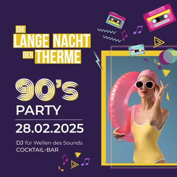 Am 24.01.2025 fand mit dem Motto „Laserzauber“ die erste Lange Nacht der Therme in diesem Jahr statt und schon am 28.02.2025 ist es wieder so weit! Die Lange Nacht der Therme mit Besuch der Therme und Saunalandschaft bis 24 Uhr lädt Nachtschwärmer zum Verweilen ein.