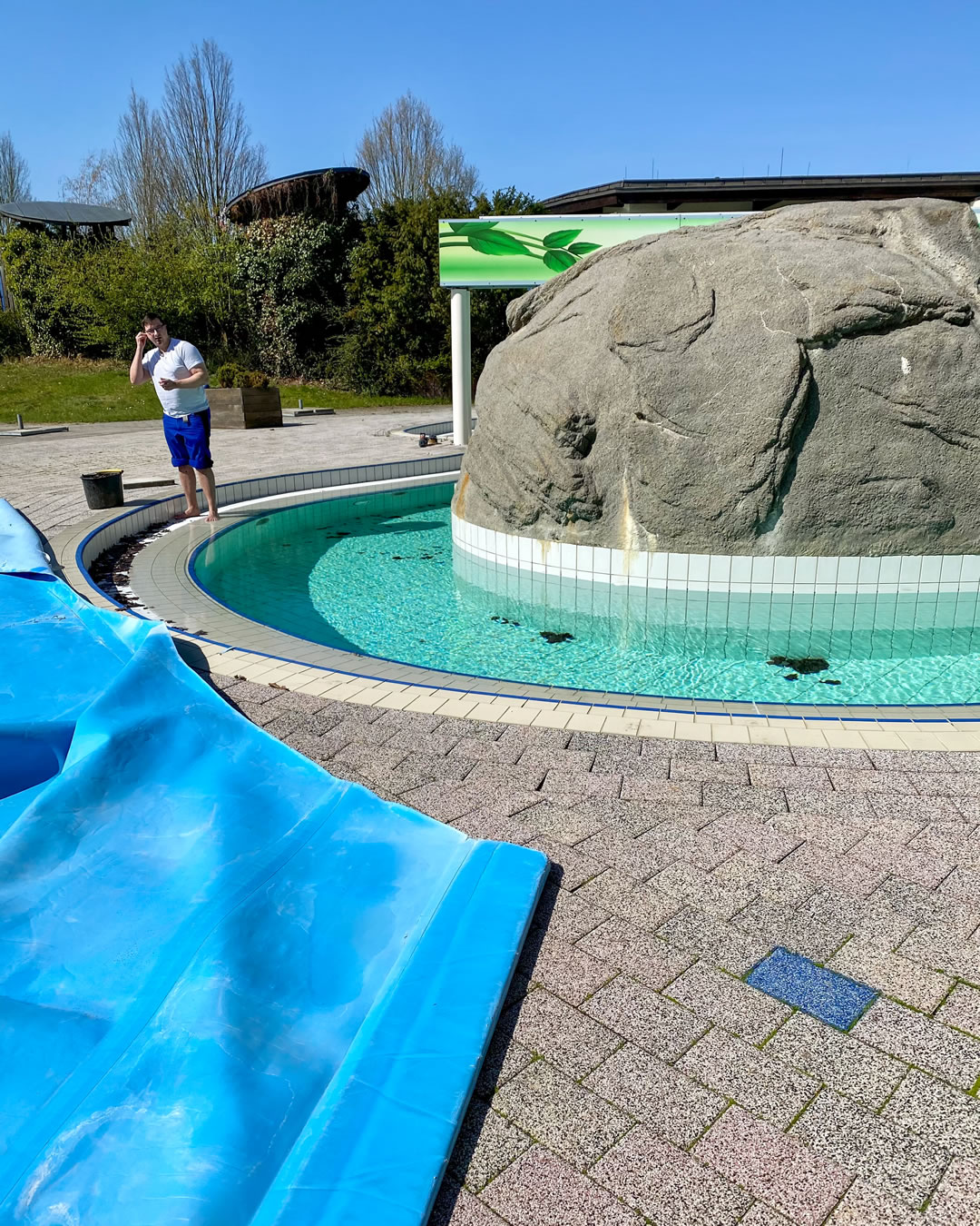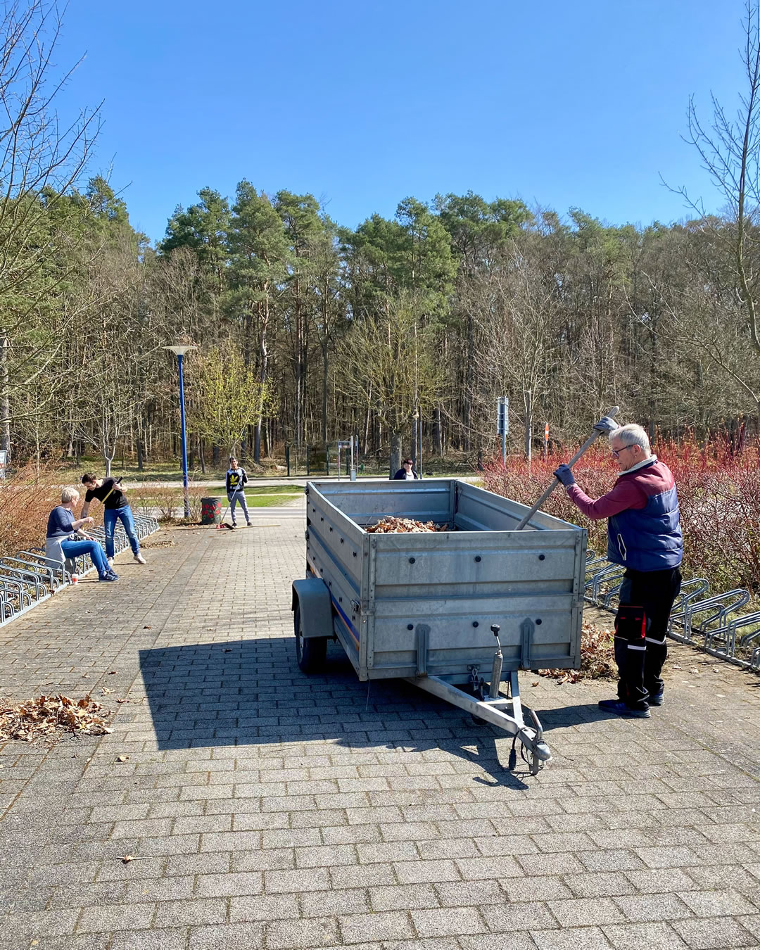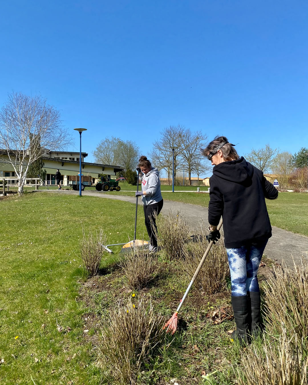 Heute haben unsere Mitarbeiter an einem Arbeitseinsatz vor Ort um die NaturThermeTemplin herum bei schönstem Wetter (strahlender Sonnenschein und blauer Himmel).