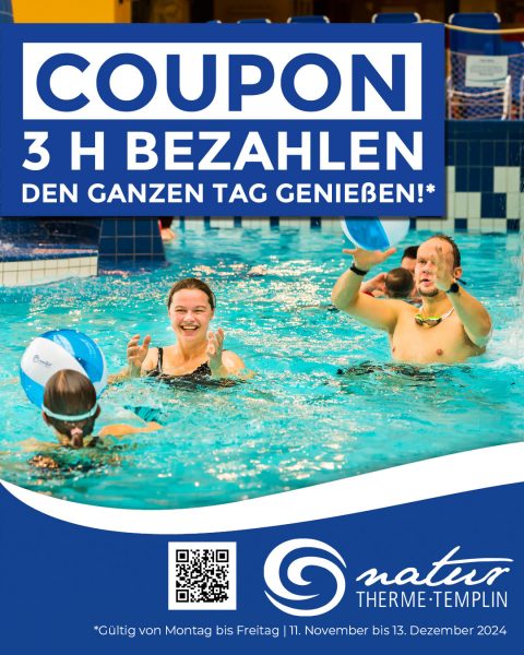 Wie? Ganz einfach – mit unserem Online-Coupon. Bei Vorlage des Coupons an der Kasse, zahlen Sie pro Person den Eintritt für 3 Stunden, können aber den ganzen Tag bleiben! Die Aktion gilt in der Woche von Montag bis Freitag. Am Wochenende können die Coupons nicht eingelöst werden.